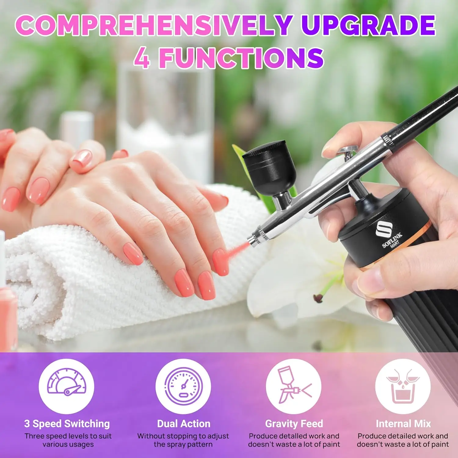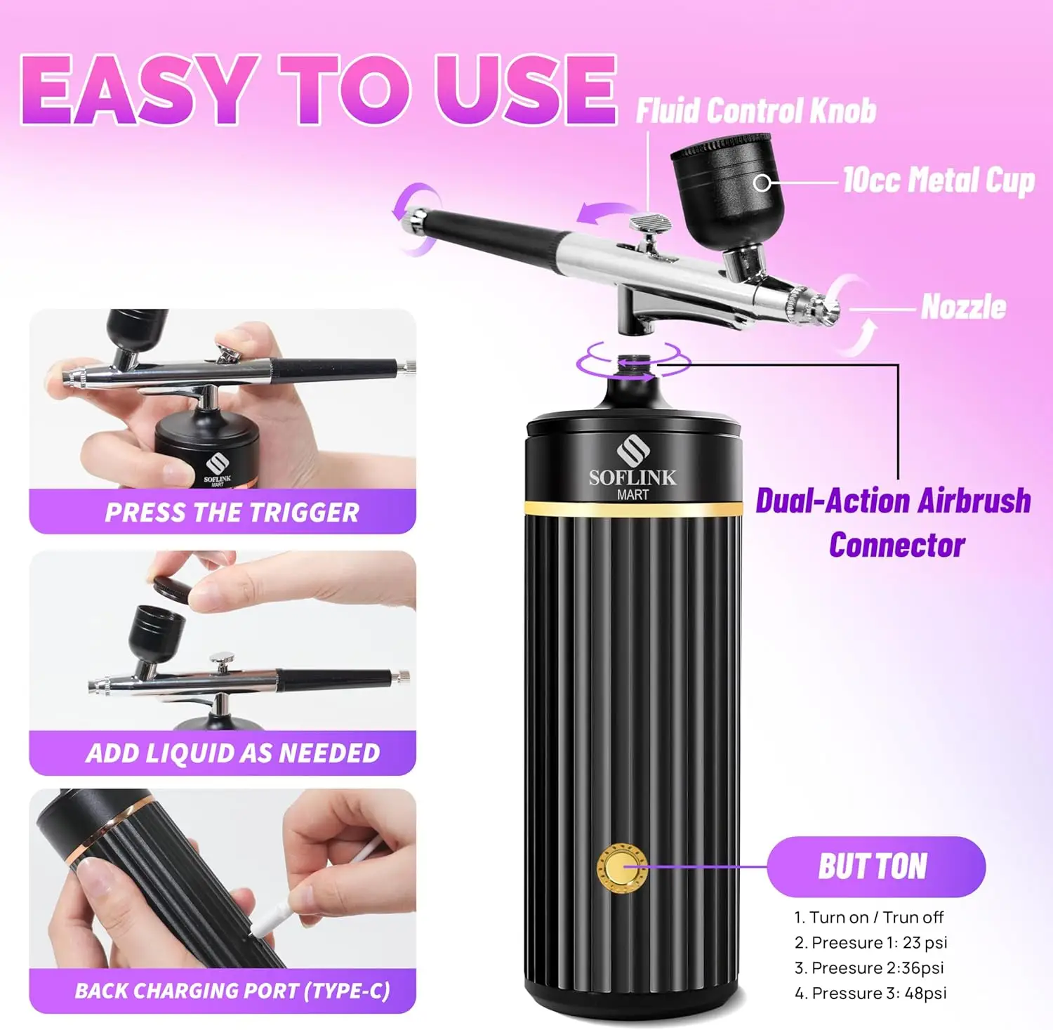 SOFLINK MART Cordless Airbrush Kit with Compressor, 48PSI Rechargeable Handheld Airbrush for Nails, Portable Nail Airbrush Machine Gel Polish for Tattoo, Makeup, Barber, Decoration etc.